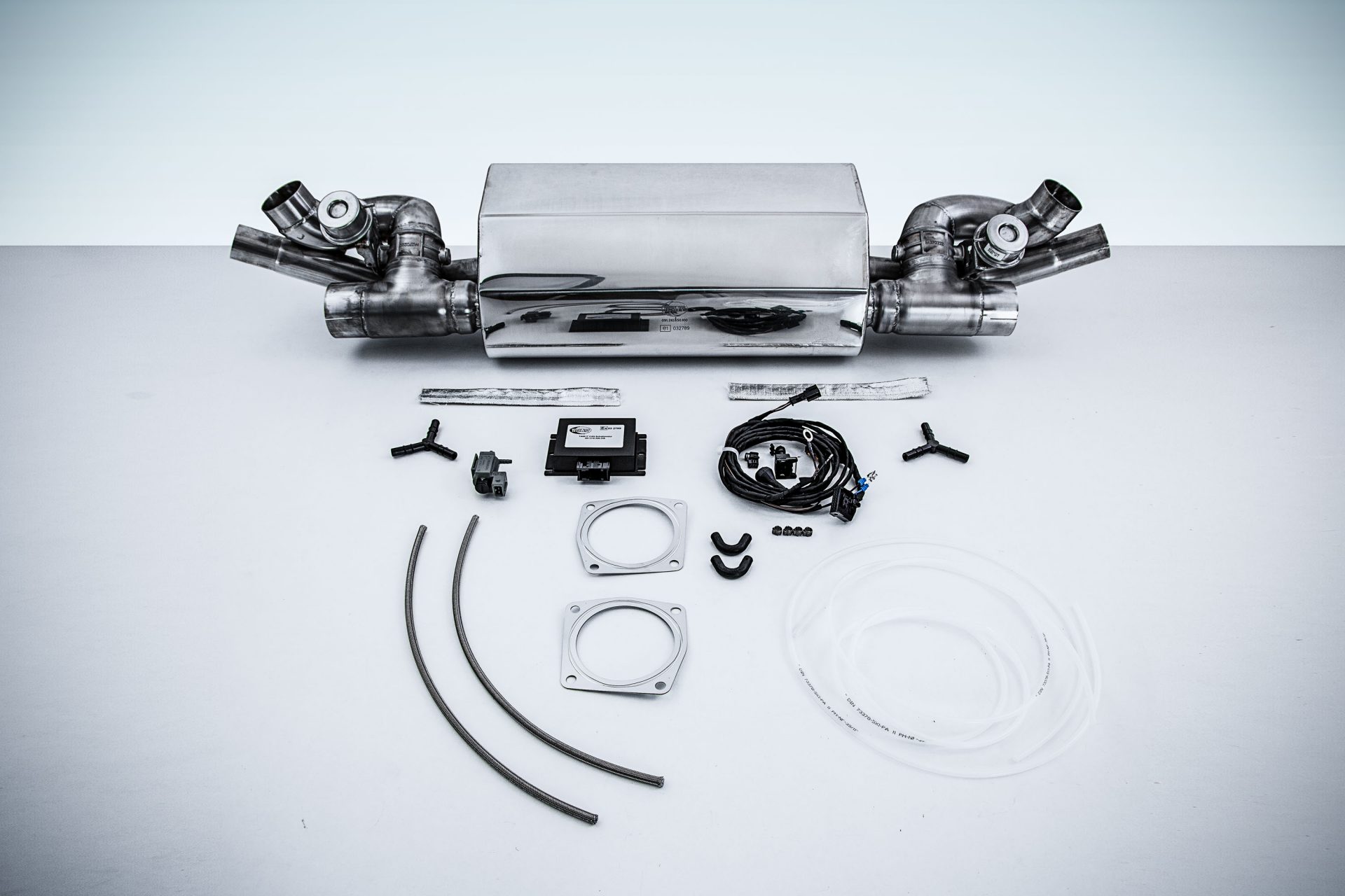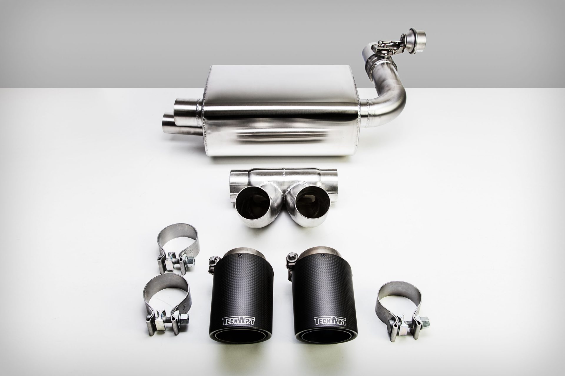 Układ wydechowy TECHART ‚Racing’ tworzy głęboki, potężny dźwięk silnika boxer z wyraźną różnicą między trybem ‚Normal’, a ‚Sport’. Podobnie jak powerkit, przepustnica wydechu jest kontrolowana przez standardowy przycisk Sport lub opcjonalny przycisk. W czasie postoju dwie centralne tytanowe rury wydechowe z karbonowymi końcówkami wyróżniają sportową duszę pojazdu. Na życzenie układ wydechowy TECHART ‚Racing’ może być połączony z seryjnymi końcówkami wydechu.