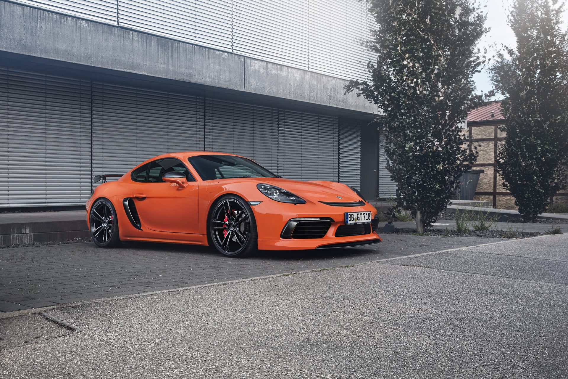 Bodykit TECHART dla nowego Porsche 718 Boxster oraz 718 Cayman zwiększa dynamiczny wygląd sportowego samochodu z silnikiem po środku. Dwuczęściowy przedni spoiler ze zintegrowanym splitterem wizualnie polepsza front 718. Centralny wlot powietrza pomaga w zwiększeniu docisku aerodynamicznego. Obie części, splitter i wlot powietrza są dostępne opcjonalnie w włóknie węglowym. Zakrzywione płetwy wzmacniają boczne wloty powietrza. Tylny dyfuzor TECHART otacza dwie centralne rury wydechowe.